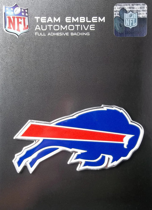 NFL Buffalo Bills Auto Emblem with Color, Licensed (promark). Plastic auto emblem can be applied to a vehicle or any other hard surface with the automotive 3M tape included on the emblem. Can be removed with out damaging paint or surface and is UV protected.