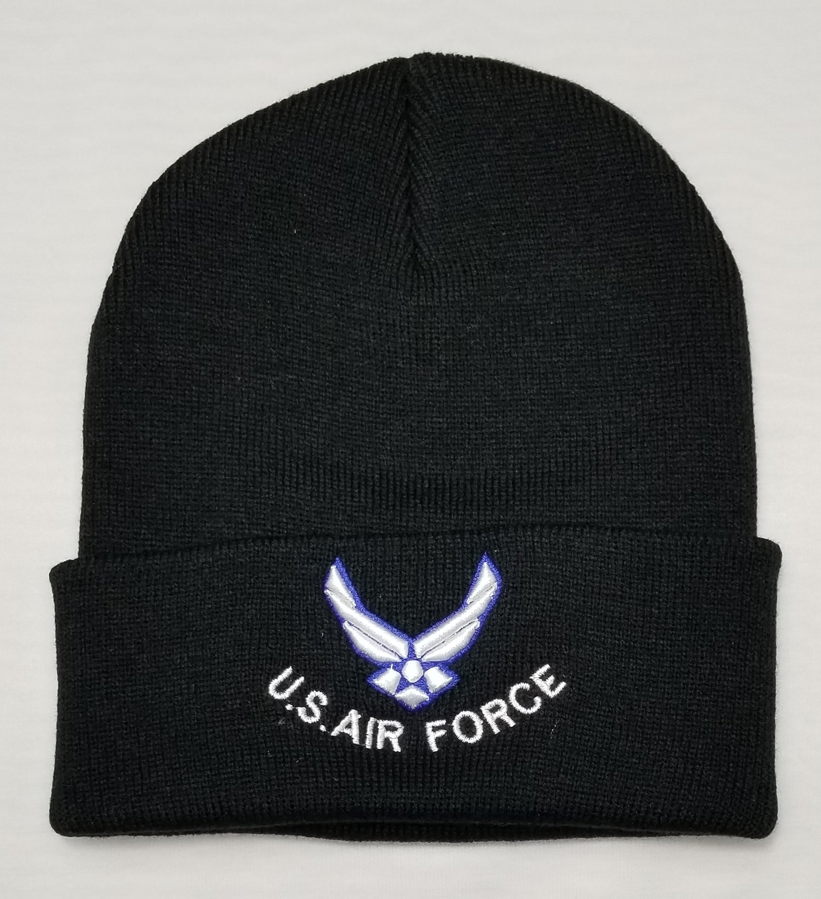 Adult Beanie - Military - B04AIR01-BLK- Air Force Wings , Licensed