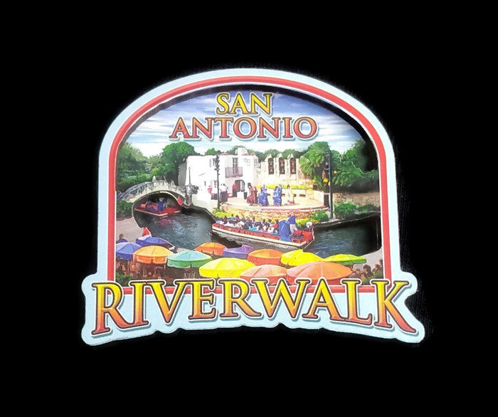 San Antonio, Texas Wooden Magnet Souvenir - Arneson Theater with Riverwalk