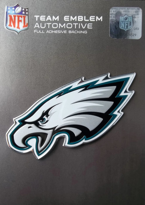 NFL Philadelphia Eagles Auto Emblem with Color, Licensed (promark). Plastic auto emblem can be applied to a vehicle or any other hard surface with the automotive 3M tape included on the emblem. Can be removed with out damaging paint or surface and is UV protected.